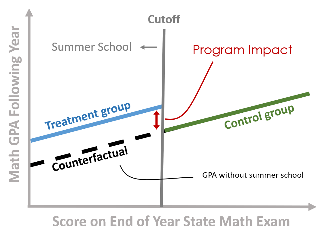 Instead of running a basic regression with controls, the models you learn this semester use new specifications and some clevel quasi-experimental design tricks in order to create build reasonable counterfactuals into the models. When deployed properly, the resulting estimates of program impact get much closer to what a Randomized Control Trial would produce.
