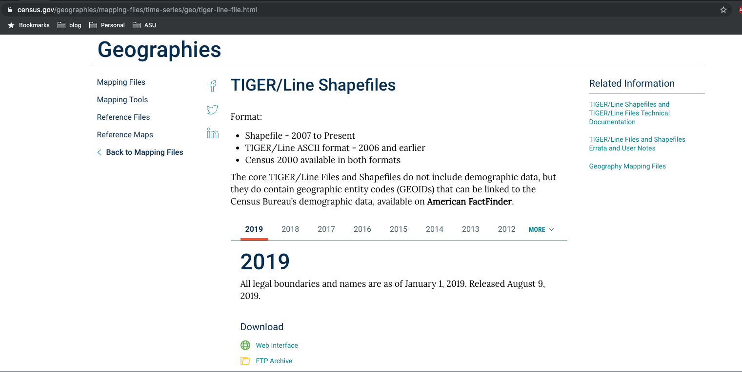tracts()counties()school_districts()roads()Instead of downloading data from the horrible-to-navigate Census FactFinder or pleasant-to-navigate CensusReporter.org we can pull the code with the censusapi package from Hannah Recht, of Bloomberg.