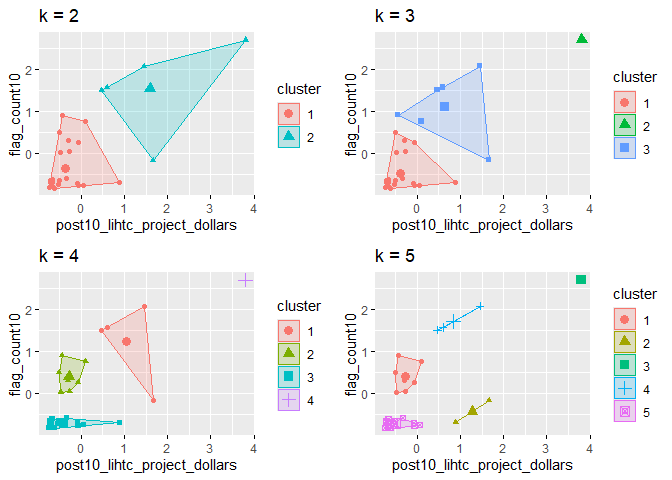 grid.arrange(p_k2_lihtc_div2, p_k3_lihtc_div2, p_k4_lihtc_div2, p_k5_lihtc_div2, nrow = 2)