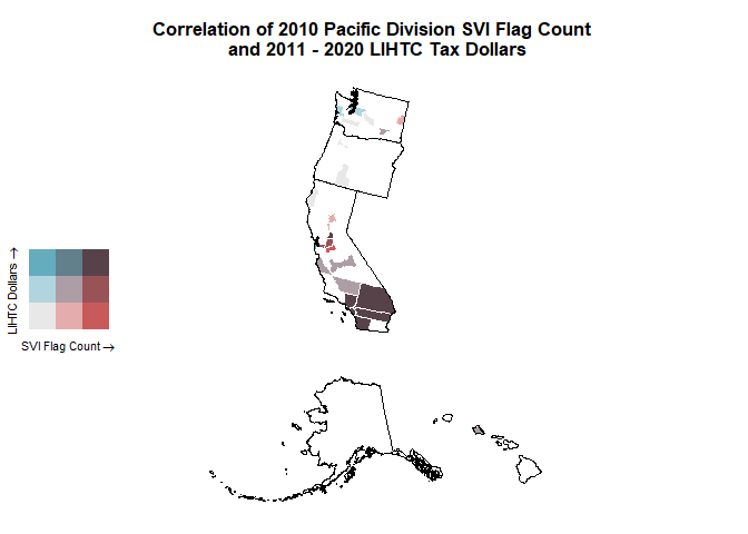 title = paste0("Correlation of 2010 ", census_division, " SVI Flag Count \n and 2011 - 2020 LIHTC Tax Dollars")