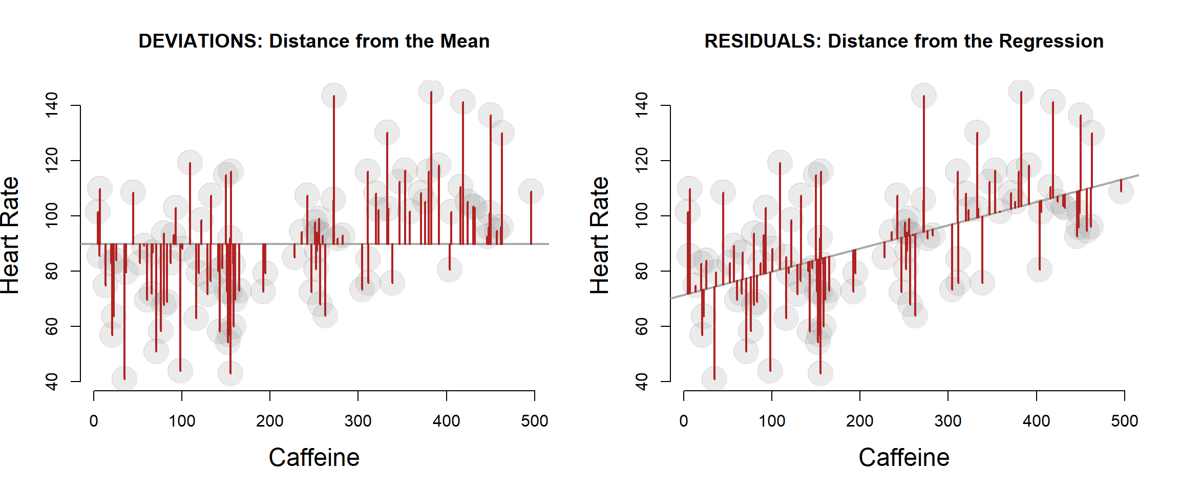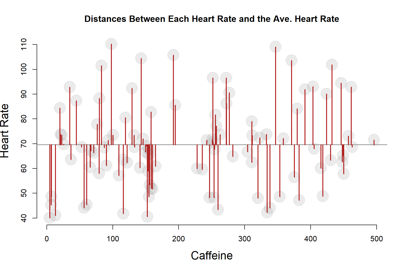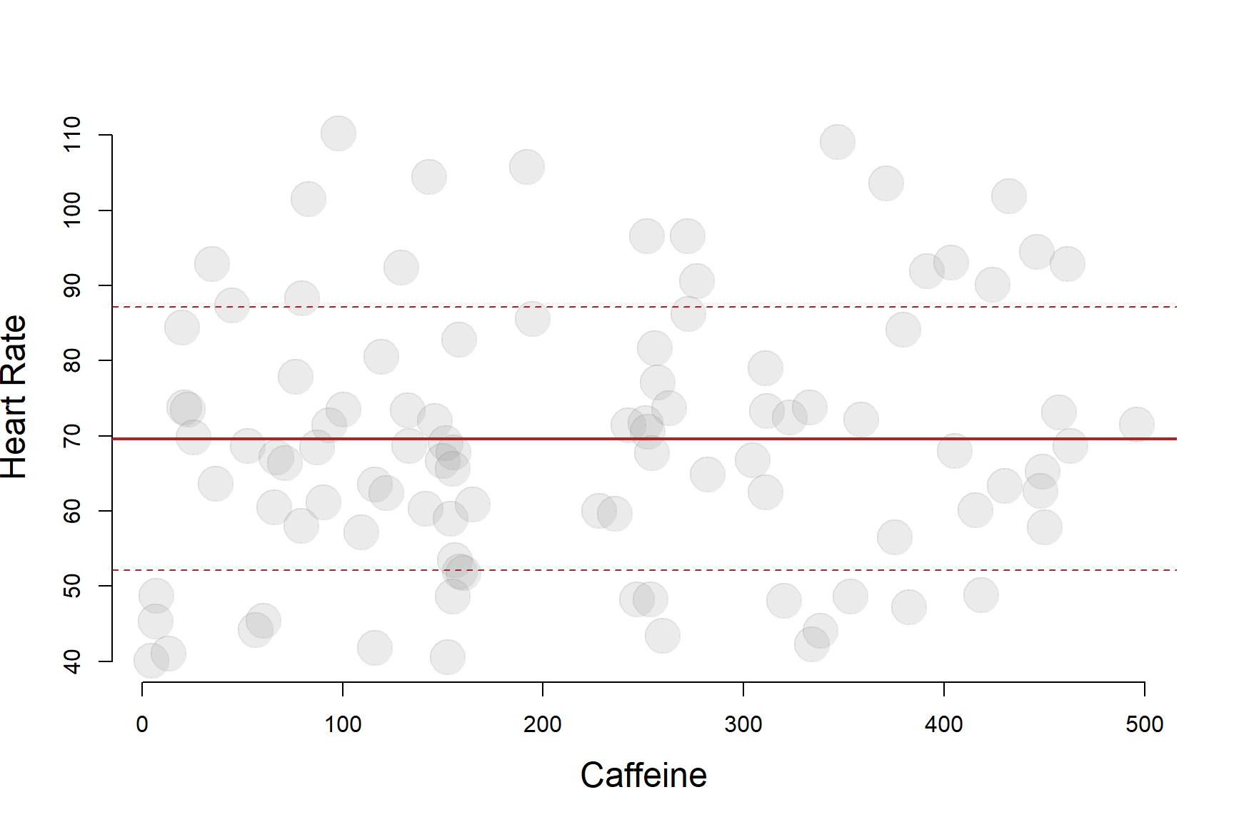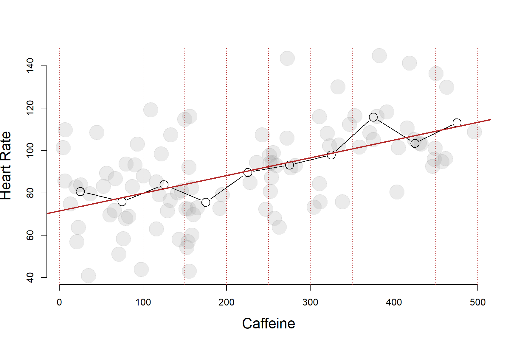 This does demonstrate an important point, however. The regression model is a conditional mean: it gives you the average heart rate of a subject conditional on how much caffeine they consumed.