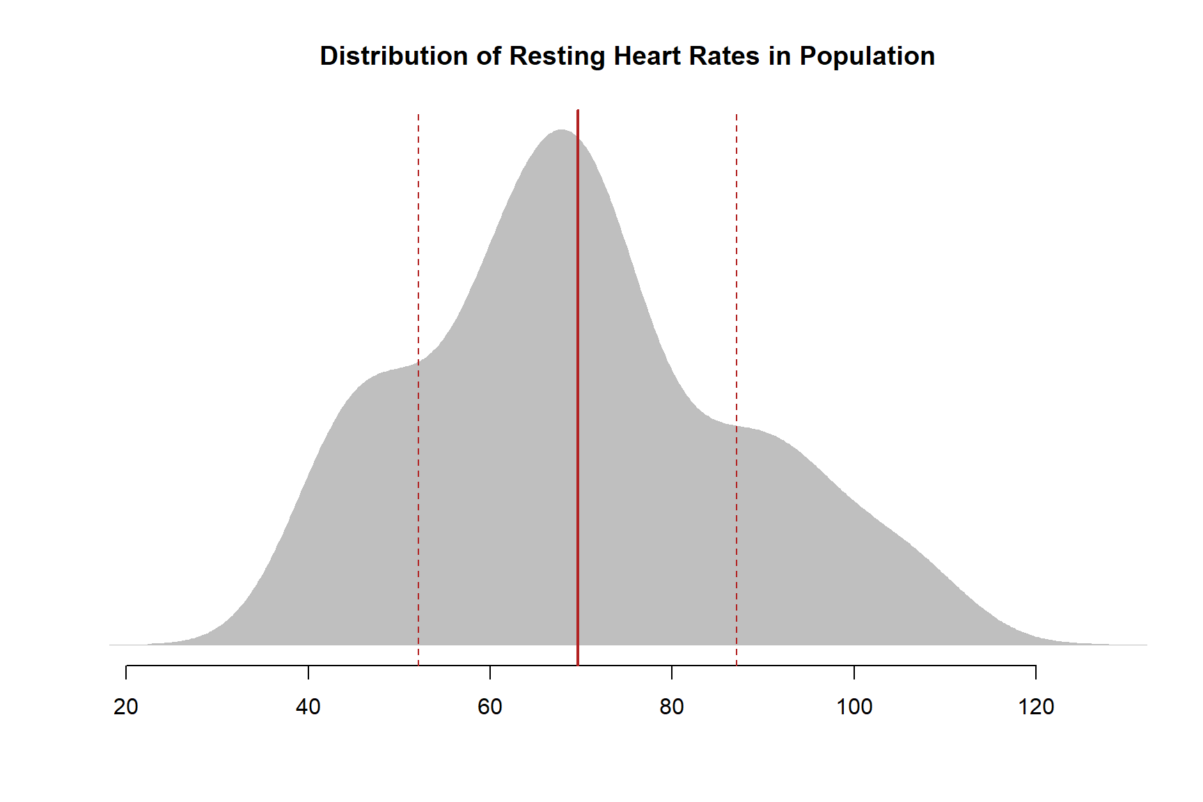 Let’s consider the study population before they received the treatment in order to examine the distribution of heart rates through the population - the variance of heart rate.