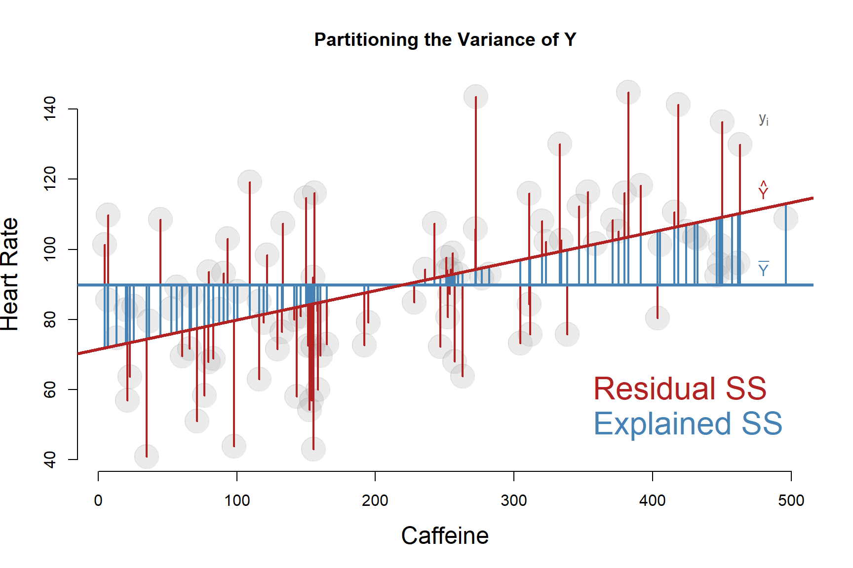 The caffeine Sum Sq here is the Explained portion, and the Residual Sum Sq is the unexplained portion.