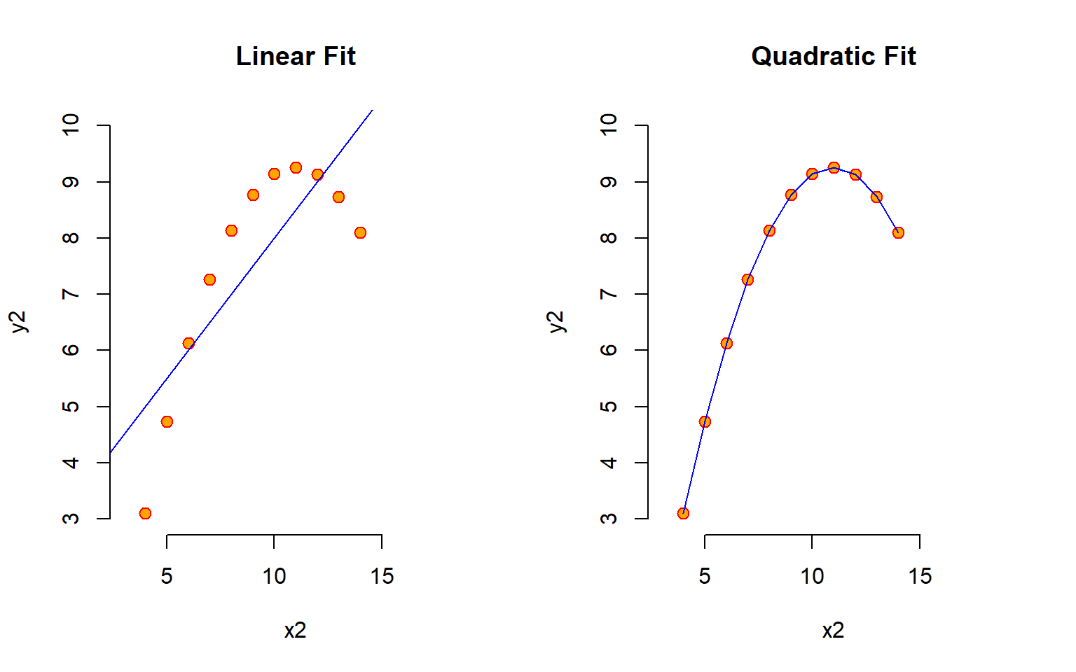 m2 <- lm( y2 ~ x2, data=anscombe )