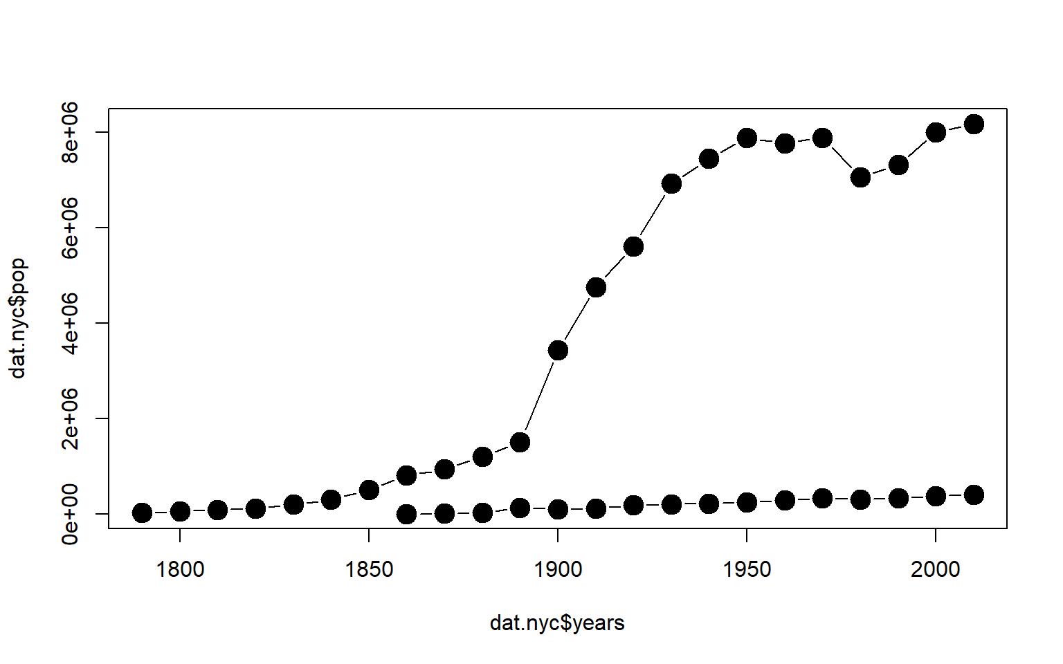 plot( dat$POP/1000, dat$NPOs,